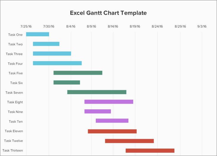 Tasks, deadlines, and progress markers can be added to the chart, and Excel will automatically calculate the timeline for you.