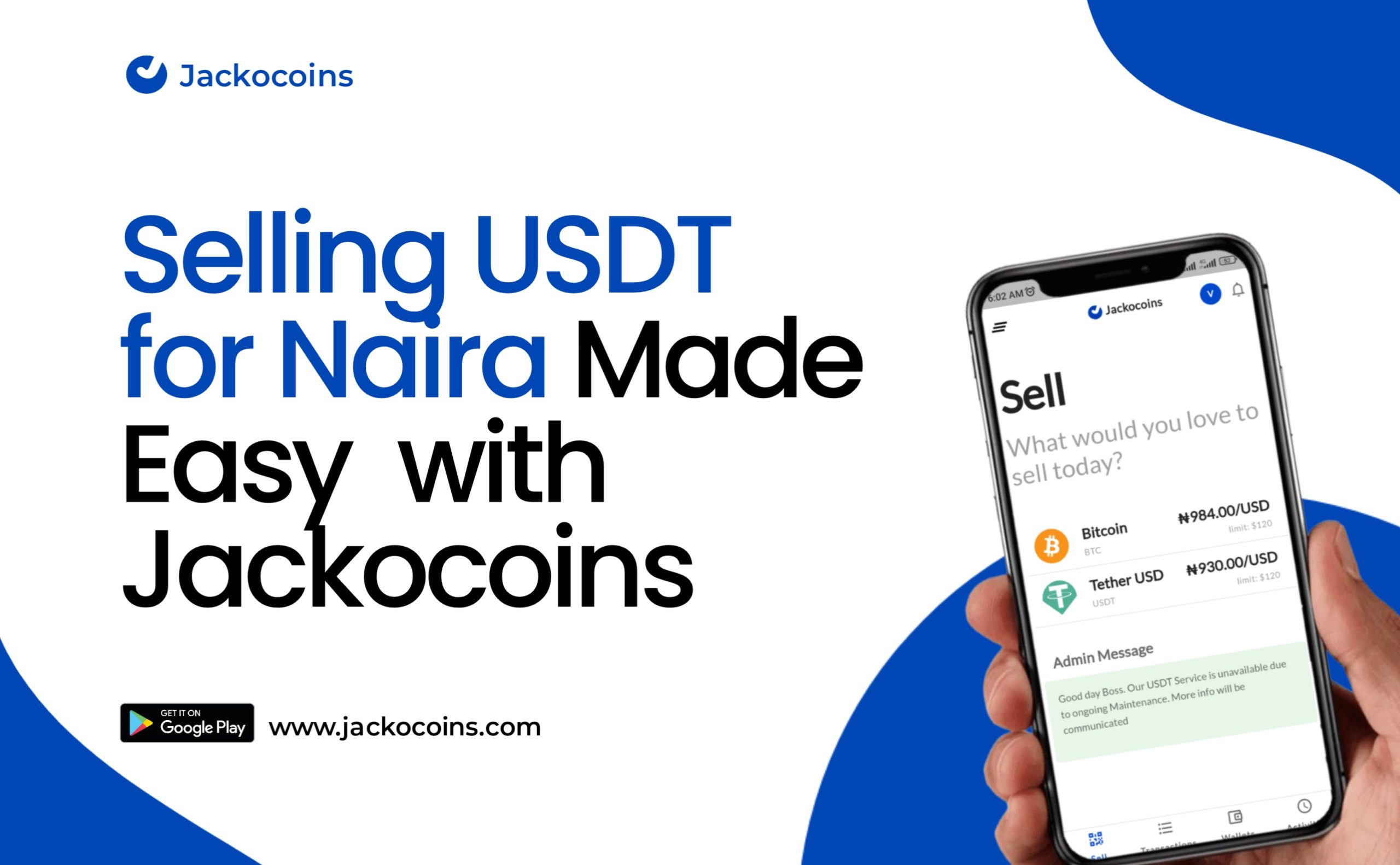 Convert your Bitcoin and USDT to naira without charge on Jackocoins platform.